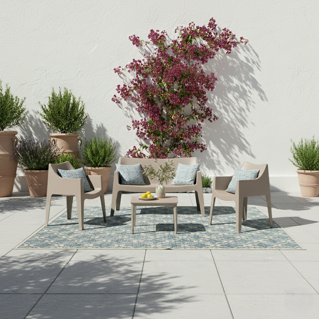 A completare la linea Coccolona, sono disponibili anche la Poltrona Coccolona e il Tavolino Argo coordinati, che condividono la stessa robusta struttura in tecnopolimero e il design impilabile, permettendoti di creare il Set Completo Coccolona da esterno versatile ed elegante.