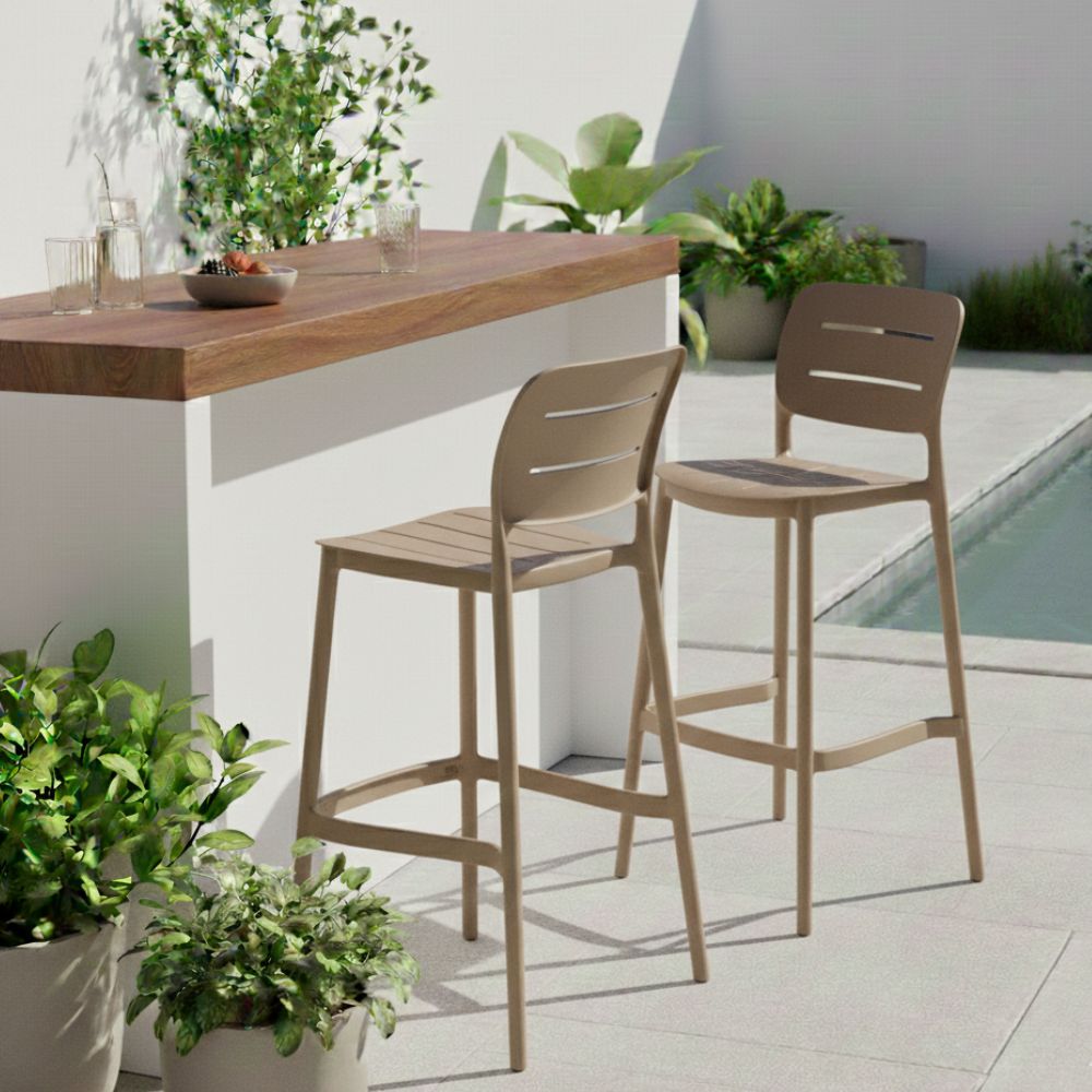 Lo Sgabello Desideria è l’unione perfetta tra stile contemporaneo e praticità inossidabile. Realizzato in polipropilene di alta qualità, è progettato per resistere all’usura del tempo e agli agenti atmosferici, rendendolo ideale sia per interno che per esterno. Linee pulite ed essenziali che si adattano a ogni ambiente. Dotato di un comodo schienale e di una seduta con fessure, con un’altezza di seduta di 75 cm. Scegli Desideria per dare un tocco di modernità funzionale a giardini, terrazze o cucine. Leggero, impilabile e disponibile in due colorazioni per personalizzare il tuo ambiente con semplicità ed eleganza. La serie Desideria continua: la collezione include anche la Sedia Desideria in polipropilene, perfetta per completare lo stile del tuo ambiente.