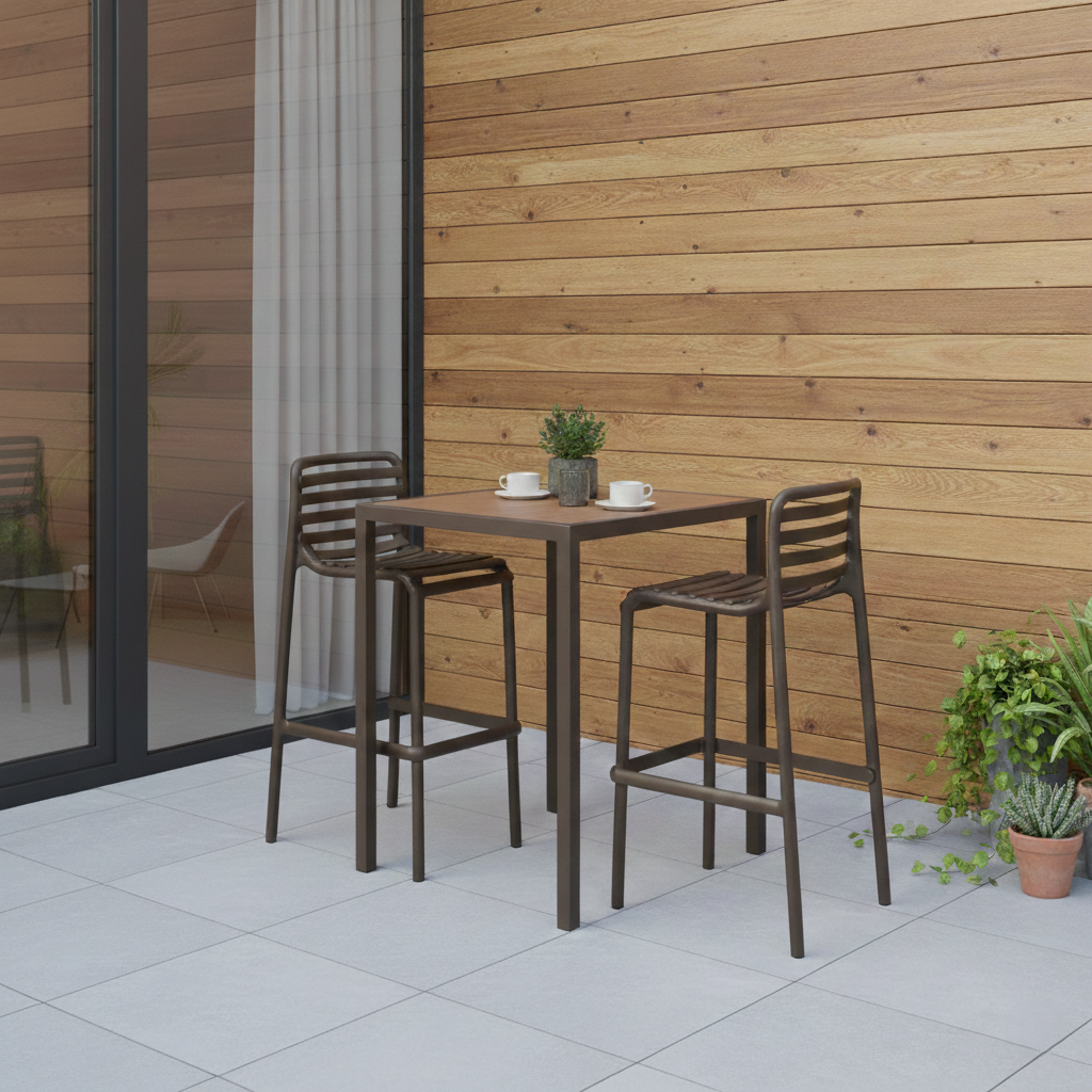 Doga Stool Nardi: Lo sgabello impilabile da esterno dal design fresco a doghe, resistente e versatile per ogni ambiente outdoor.