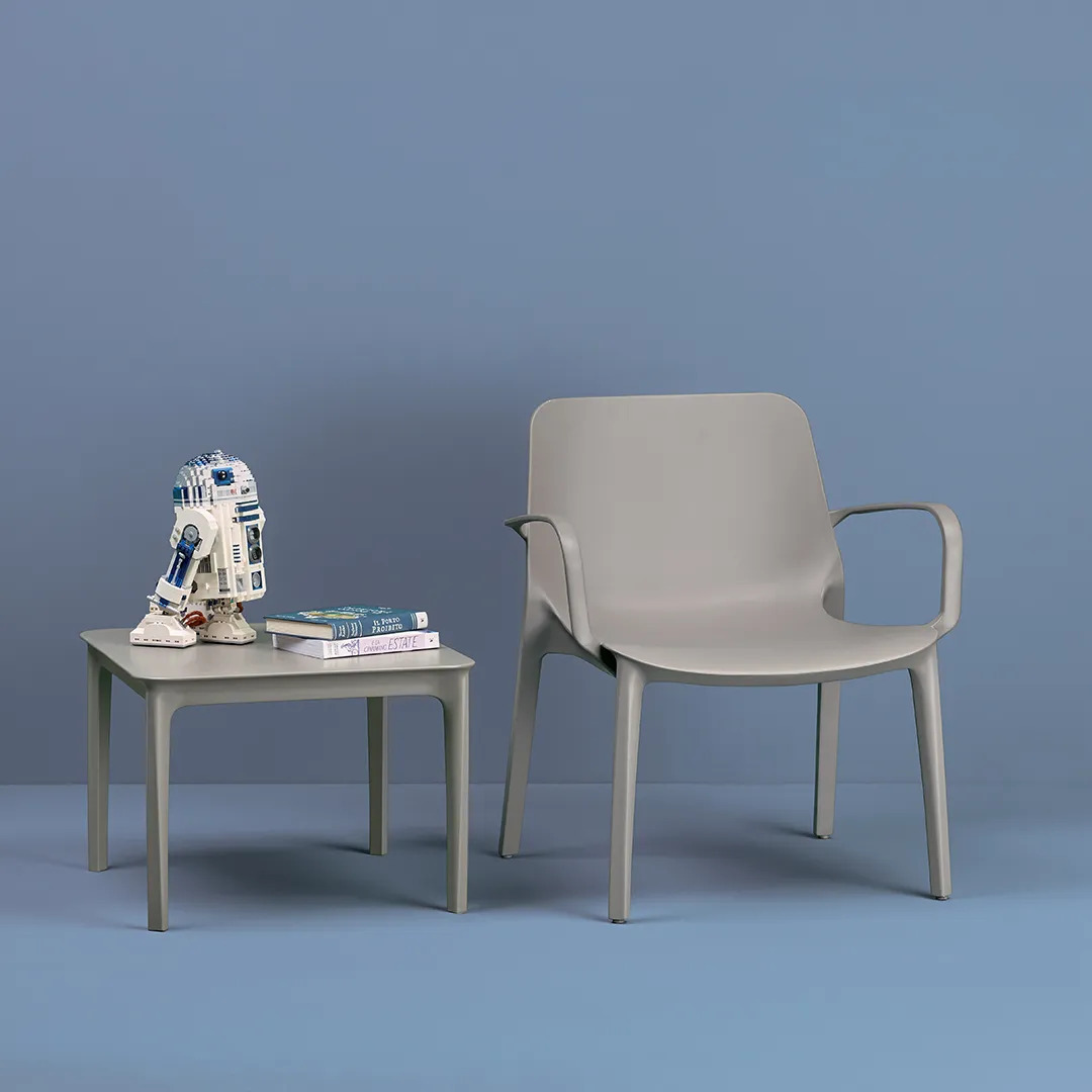 La poltrona Ginevra, può essere completata con il tavolino Argo di Scab per un set coordinato e funzionale.