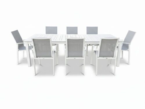 SUPREMO SET TAVOLO + 8 SEDIE IMPILABILI PAYSAGE ALLUMINIO DA ESTERNO – OPEN D