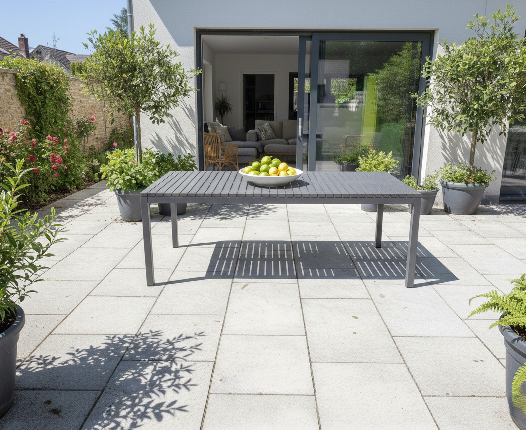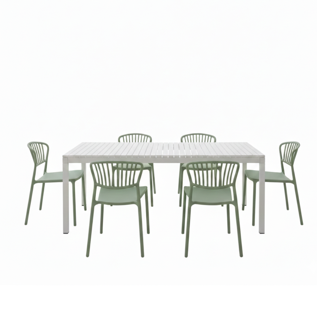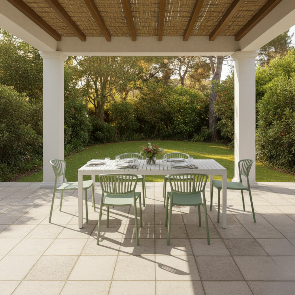 Tavolo fisso, un capolavoro di funzionalità pensato per rivoluzionare il tuo giardino. Con un telaio e gambe interamente in alluminio, garantisce una robustezza ineguagliabile e una resistenza impeccabile agli agenti atmosferici, mentre il piano in polipropilene assicura leggerezza. È la soluzione perfetta per chi cerca stile, durata e massima flessibilità.