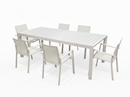 PAYSAGE SET TAVOLO + 6 SEDIE IMPILABILI VANESIA ALLUMINIO BIANCO – OPEN D
