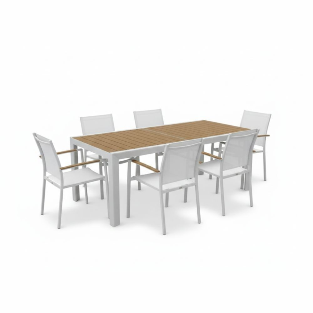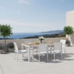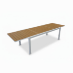 Tavolo Immenso misura 2 metri, allungabile fino a 3 metri. Completamente in alluminio con doghe effetto legno.