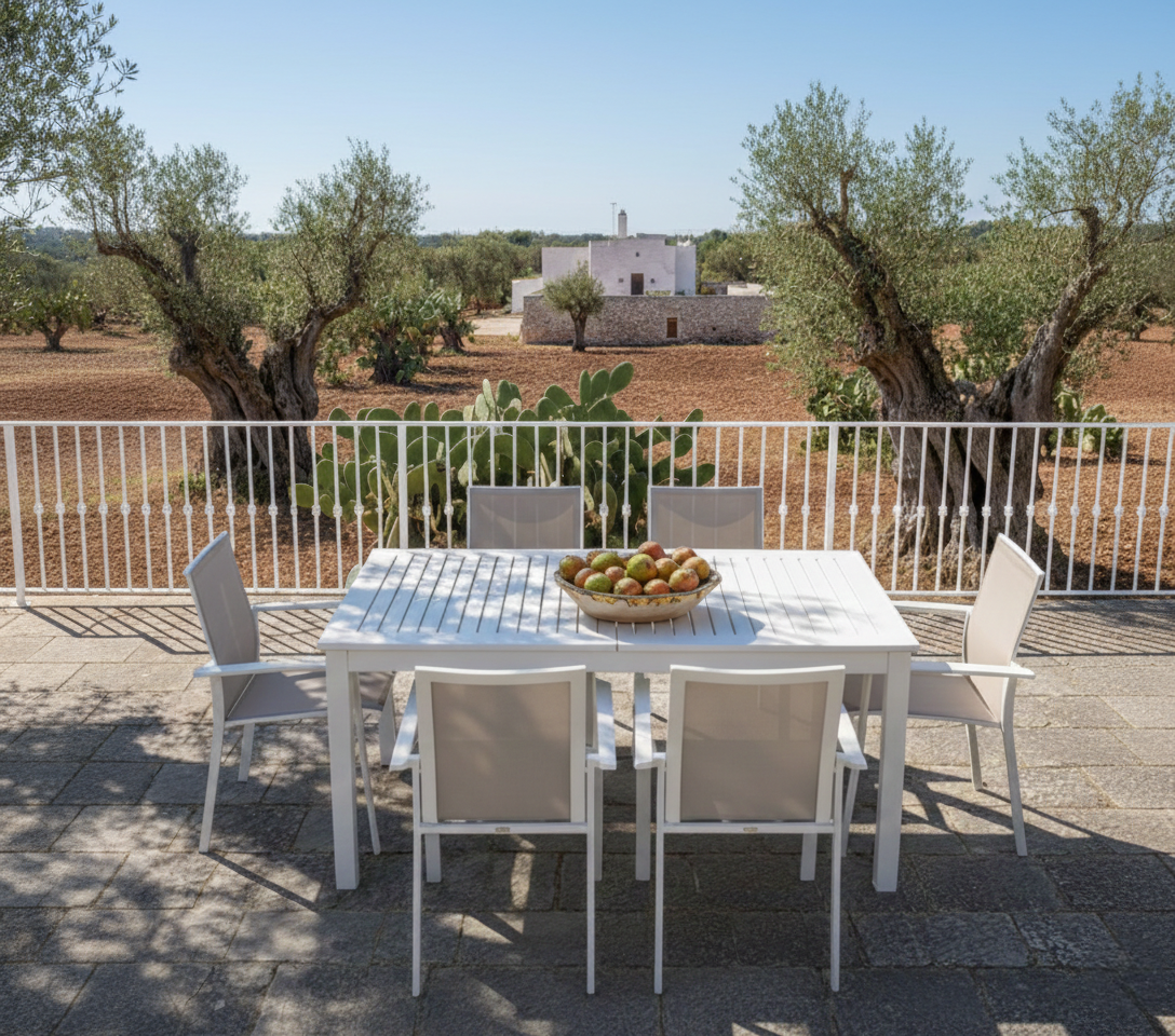 Perfetto per piccoli balconi o ampi giardini, si trasforma con un gesto: la sua apertura a libro aggiunge facilmente due posti in più. Bello, pratico, indispensabile.