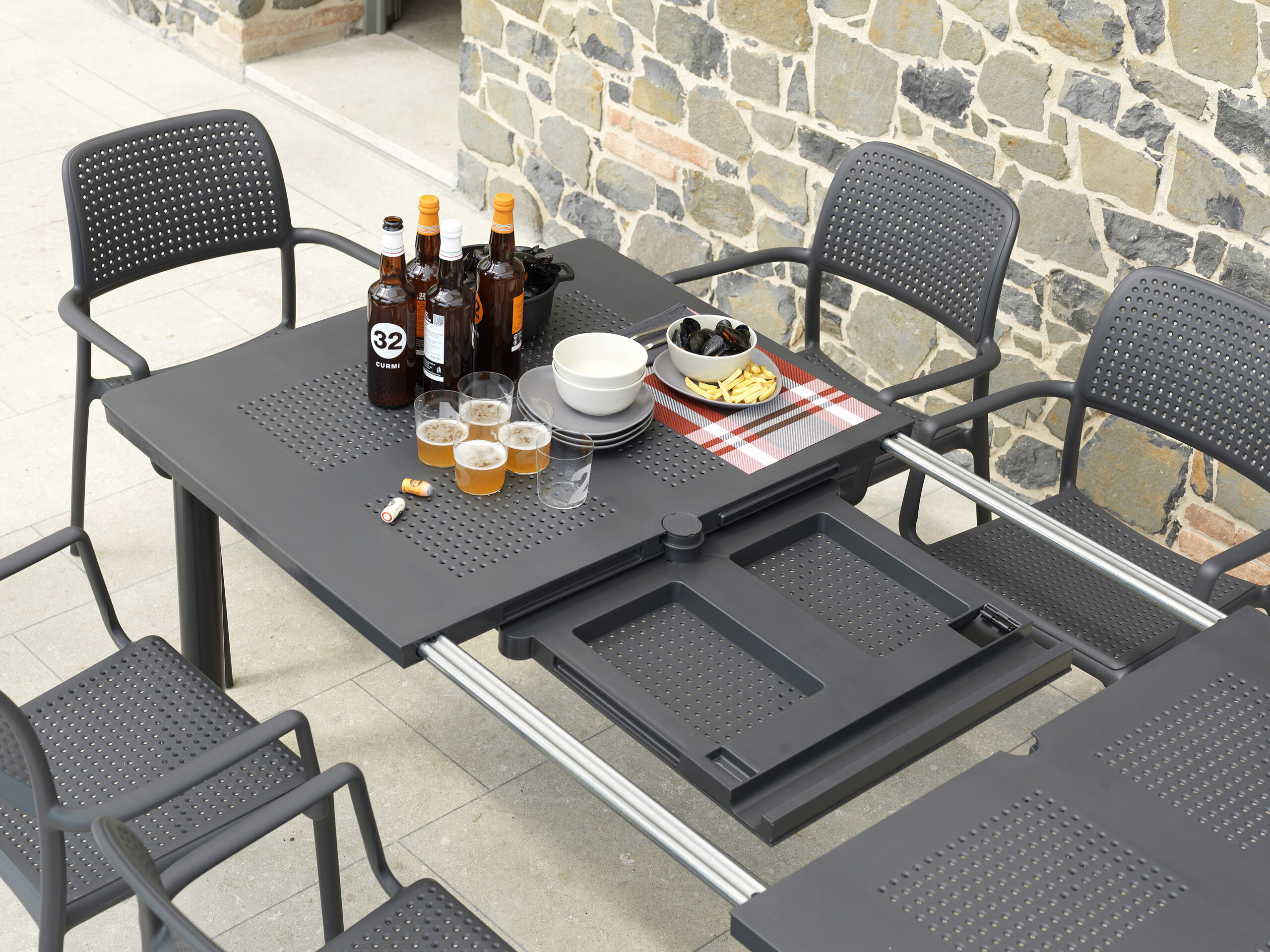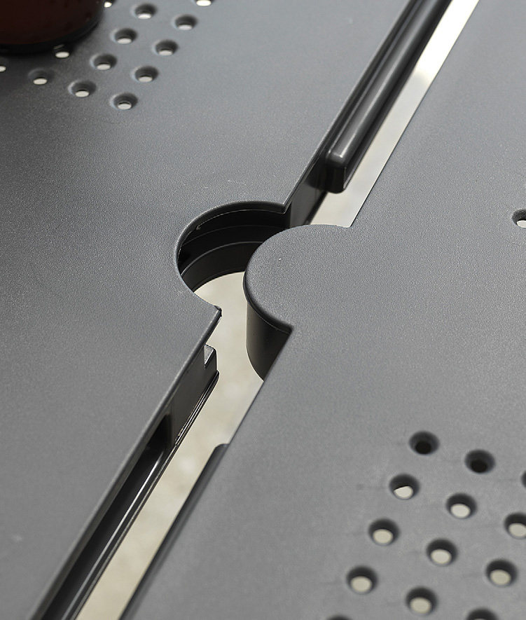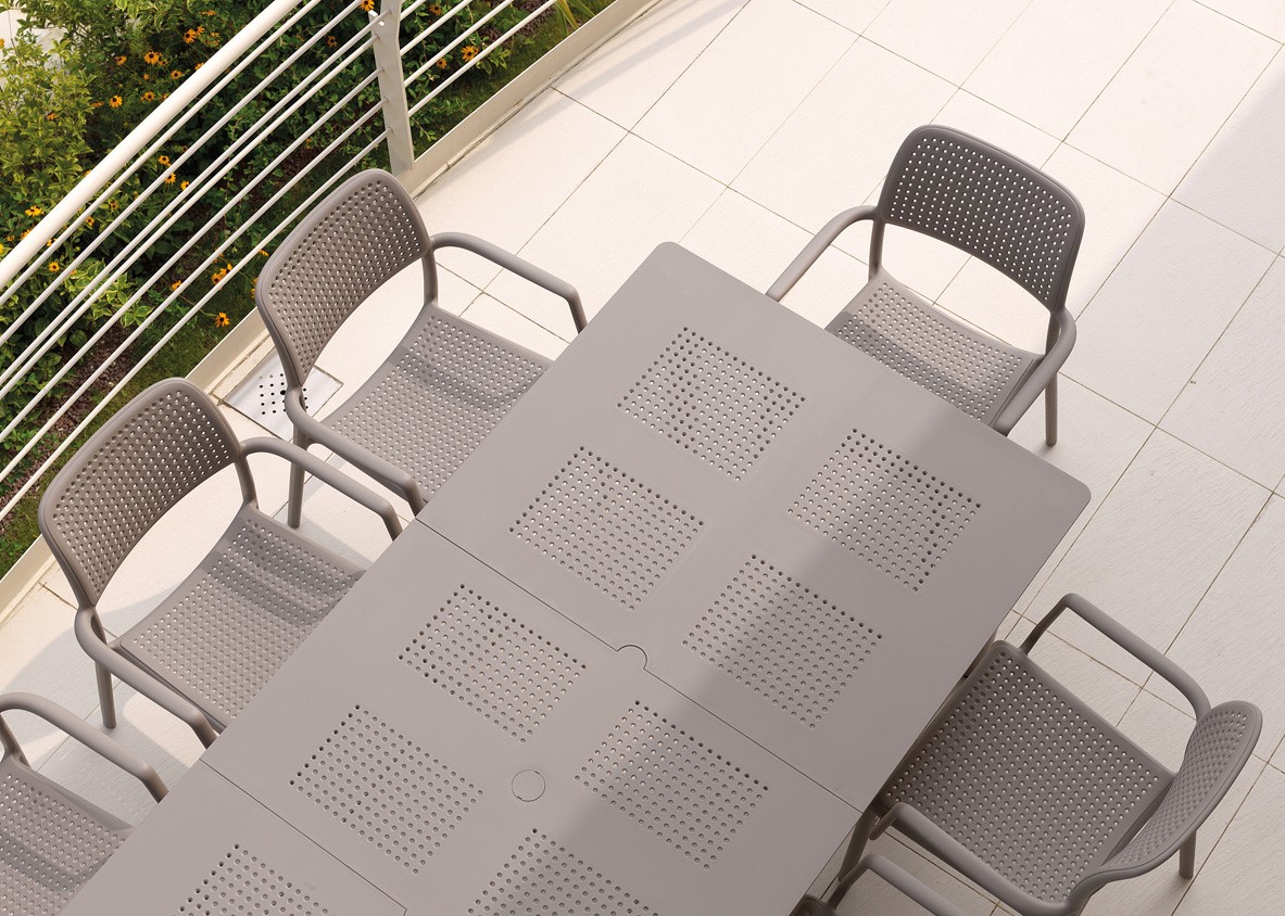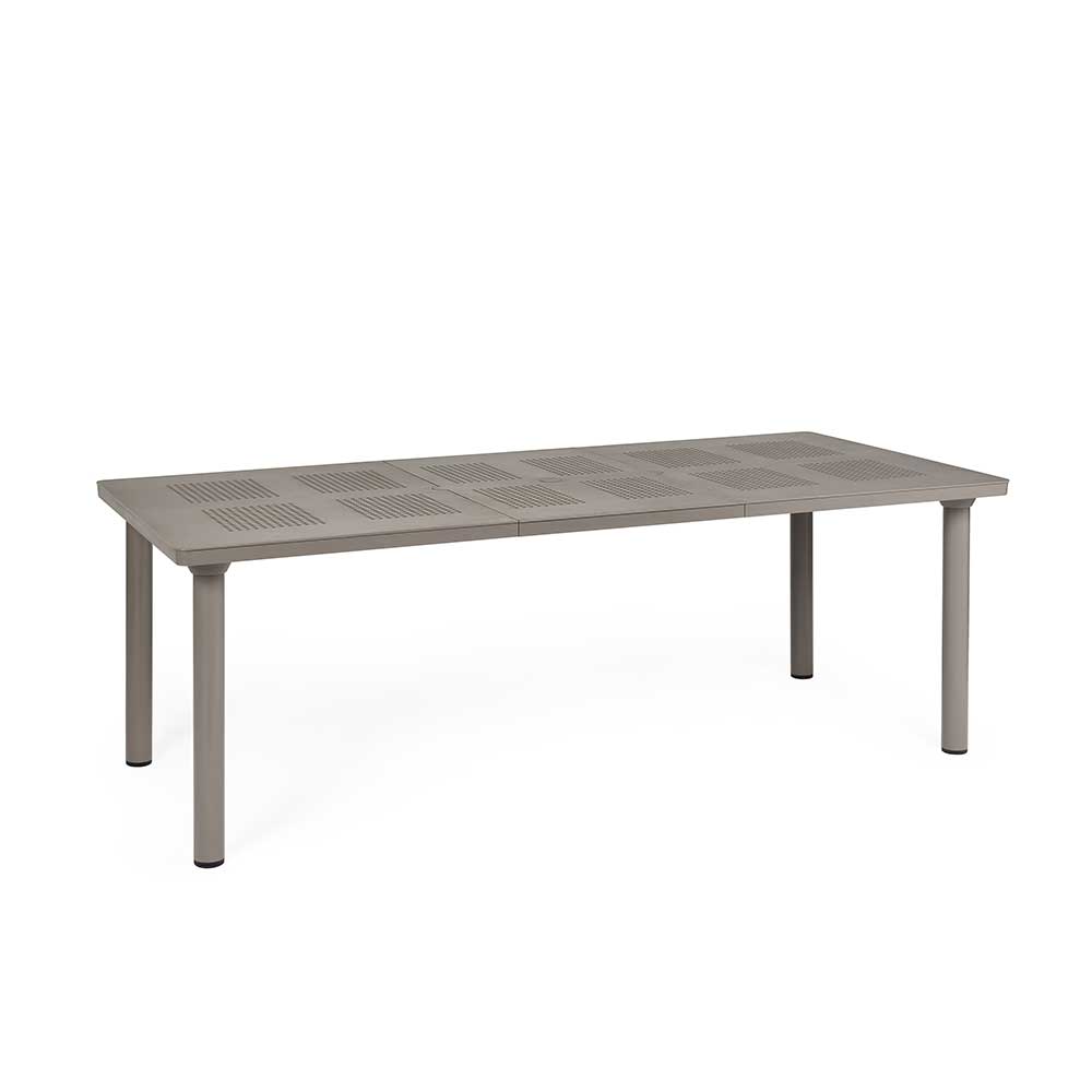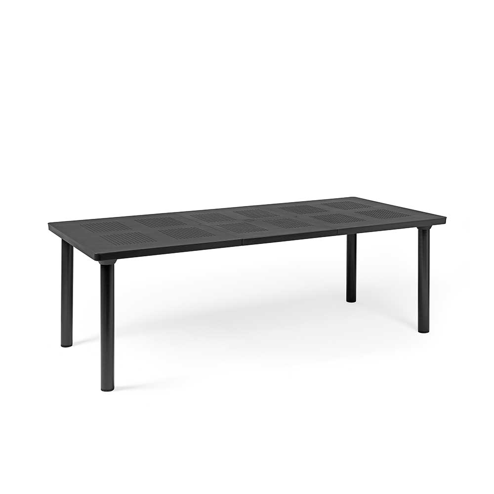 Questo tavolo allungabile per l’outdoor è un pezzo di design, che rievoca l’eleganza senza tempo dei tradizionali arredi in ferro, reinterpretandola con la praticità e la durabilità del moderno polipropilene. Il piano cattura lo sguardo con il suo motivo decorativo a piccoli fori che si ripete in una sequenza ritmica, creando un raffinato gioco di luci e ombre che valorizza i tuoi spazi esterni. Le gambe a sezione rotonda assicurano stabilità e sono fissate al piano con un semplice e ingegnoso sistema a vite. Flessibile nelle dimensioni e resistente agli agenti atmosferici, questo tavolo è la soluzione ideale per trasformare il tuo giardino o terrazzo, espandendo lo spazio a tua disposizione per cene improvvisate e grandi riunioni.