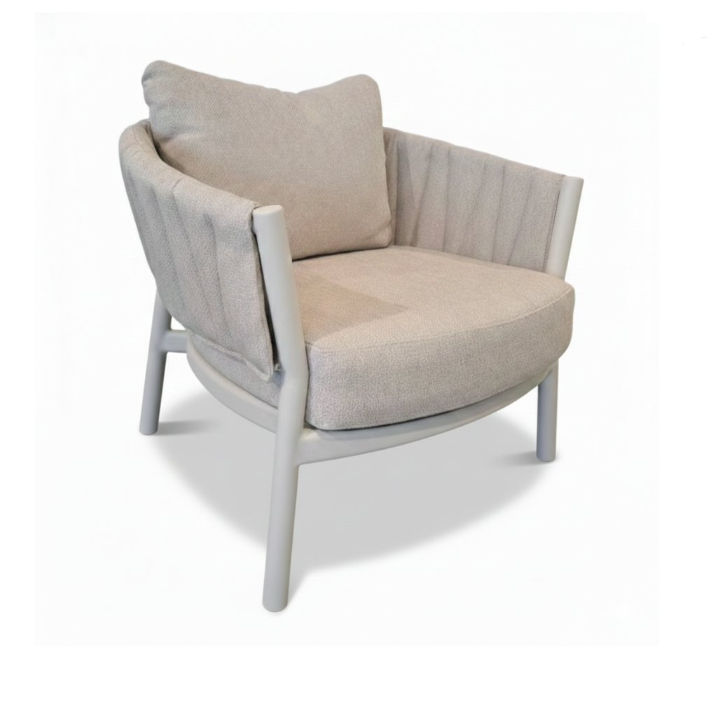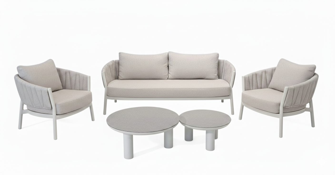Il Salotto da esterno Liquid accomuna stile, comfort e relax. La struttura in alluminio color crema, robusta e leggera, offre una base di design raffinato e resistenza impeccabile alle intemperie. Ma la vera differenza è nel comfort e nella manutenzione: divano e poltrone sono completamente sfoderabili! I cuscini sono realizzati in pregiato tessuto Olefin color sabbia, rinomato per essere anti-UV, con trattamento idrorepellente e facilissimo da lavare. A completare l’armonia estetica, i tavolini presentano una struttura in alluminio che sostiene un elegante piano in vetro con finitura effetto pietra, unendo funzionalità e un tocco di lusso naturale. Scegli la bellezza che dura e la praticità che ti libera. La serie Liquid continua anche con il Set Tavolo e Sedie Liquid, per un coordinato perfetto in tutto il tuo spazio outdoor!