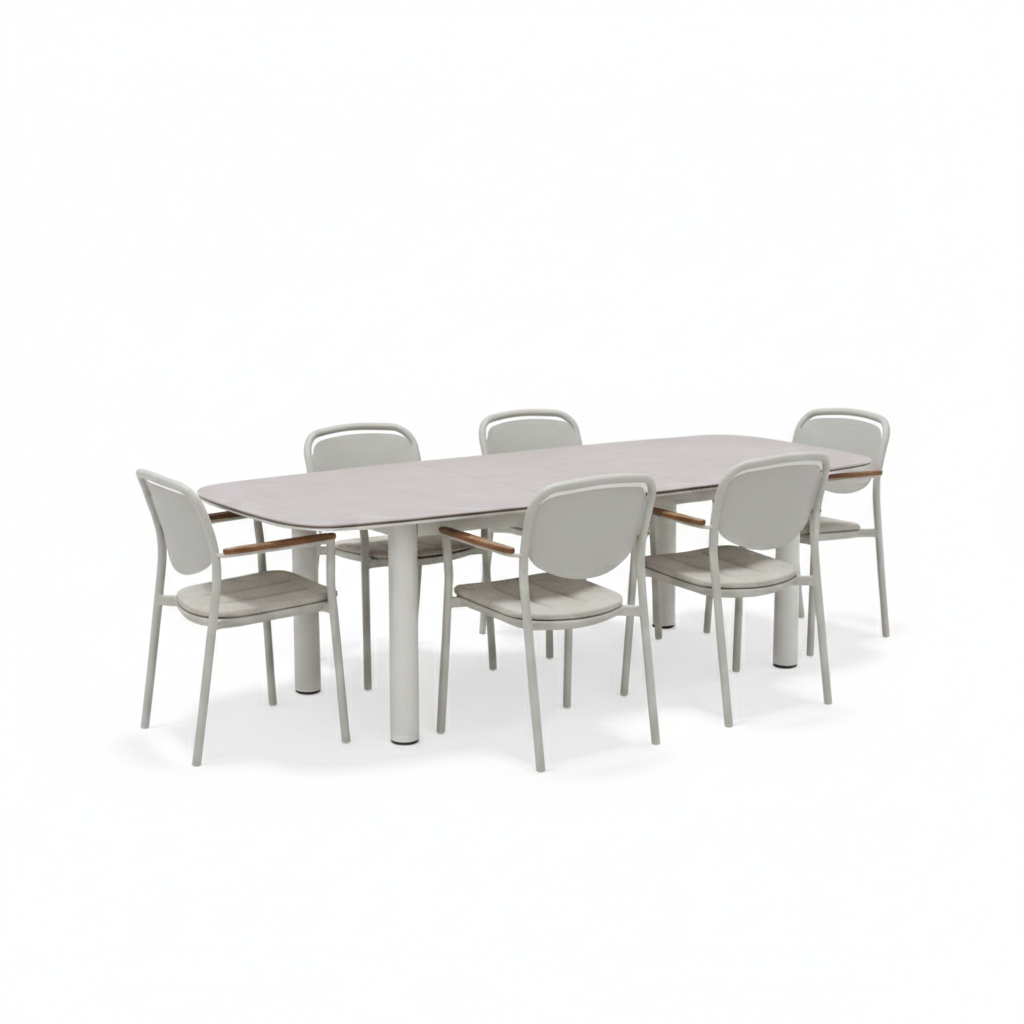 PAYSAGE SET TAVOLO + 6 SEDIE IMPILABILI VANESIA ALLUMINIO TORTORA – OPEN D