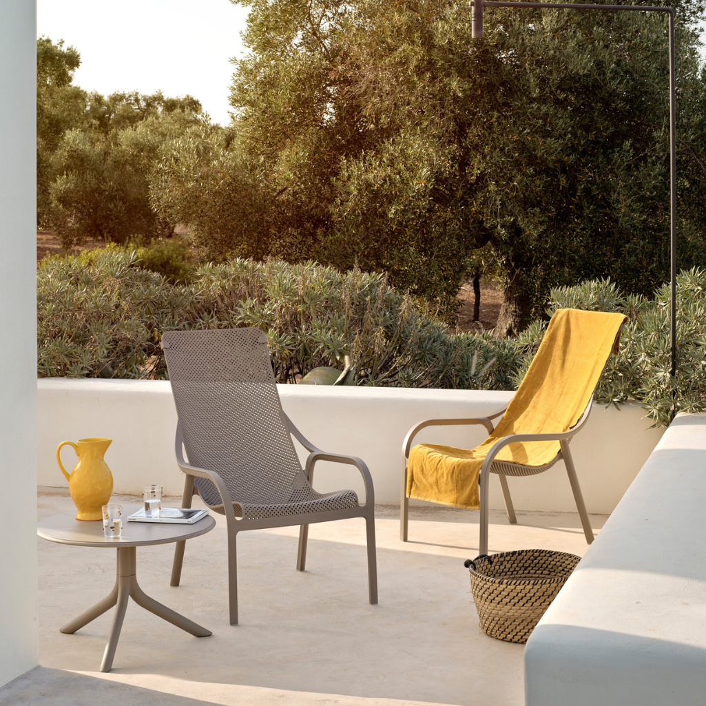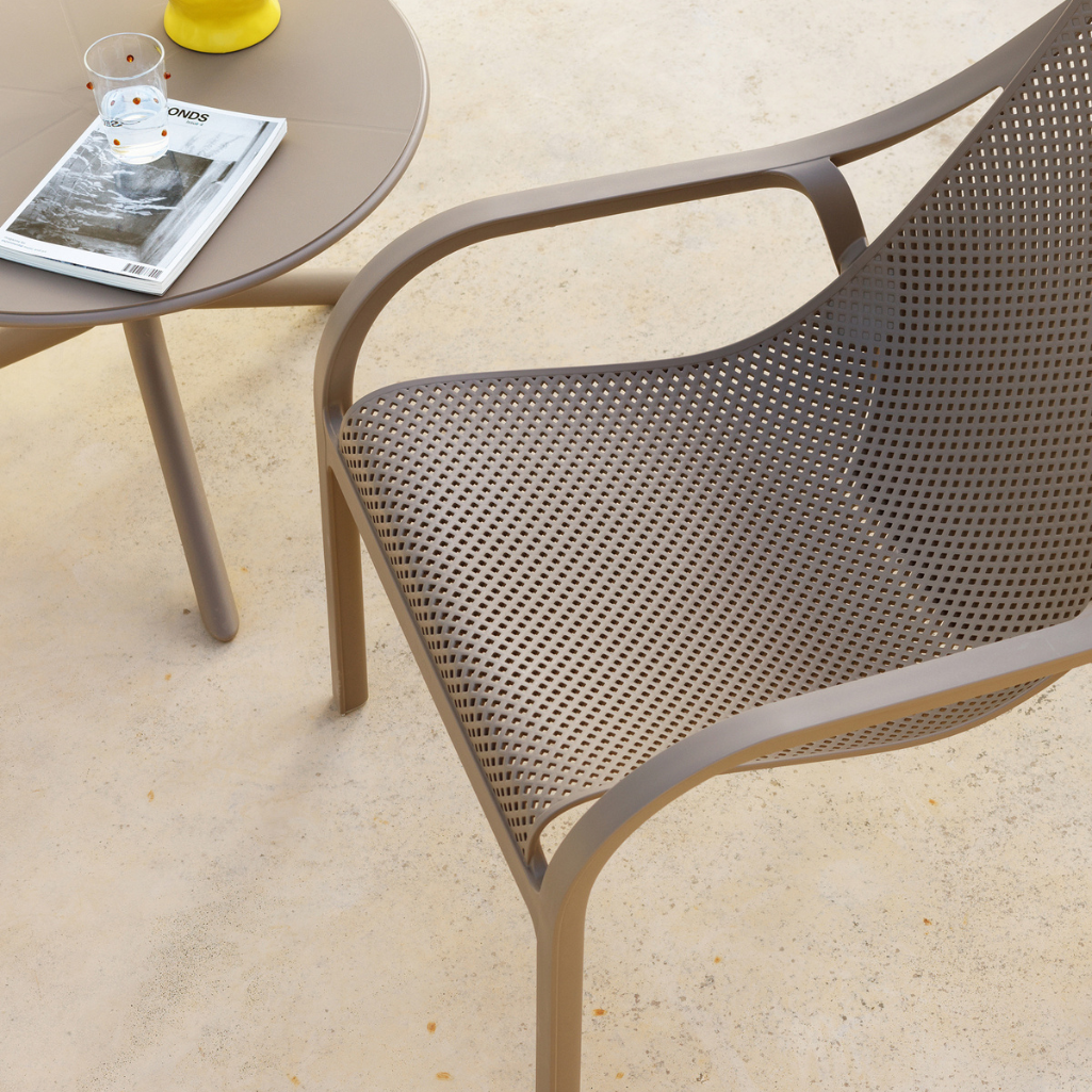 La poltrona Net Lounge Nardi è una seduta da esterno in resina fiberglass riciclabile, dal design ergonomico a onda e con motivo traforato, perfetta per il massimo relax.