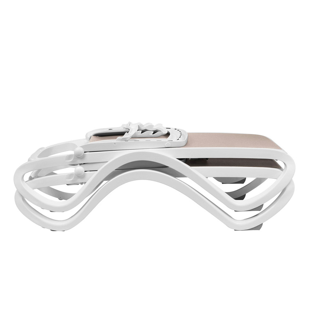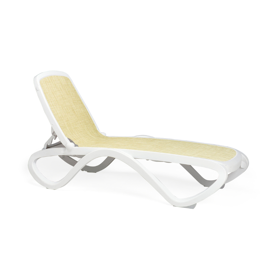 Trasforma la tua zona relax con il lettino prendisole Omega, un capolavoro di design e funzionalità firmato Nardi. Caratterizzato da una linea essenziale senza braccioli e da una robusta struttura tubolare in resina di polipropilene, questo lettino è trattato anti-UV e colorato in massa per garantire una resistenza impeccabile e colori sempre vivi anche sotto il sole più intenso. L’interno è realizzato in tessuto sintetico traspirante e di facile manutenzione, oltre che ricambiabile. Scegli il tuo comfort ideale grazie allo schienale regolabile su quattro posizioni. Con la possibilità di scegliere tra diverse combinazioni di colore per struttura e tessuto e la sua praticità impilabile, Omega è la soluzione perfetta per ogni spazio esterno. Inoltre, la sua composizione in resina riciclabile lo rende una scelta ecologica per il tuo relax. Completa il lettino con il Parasole Omega.