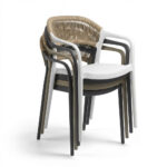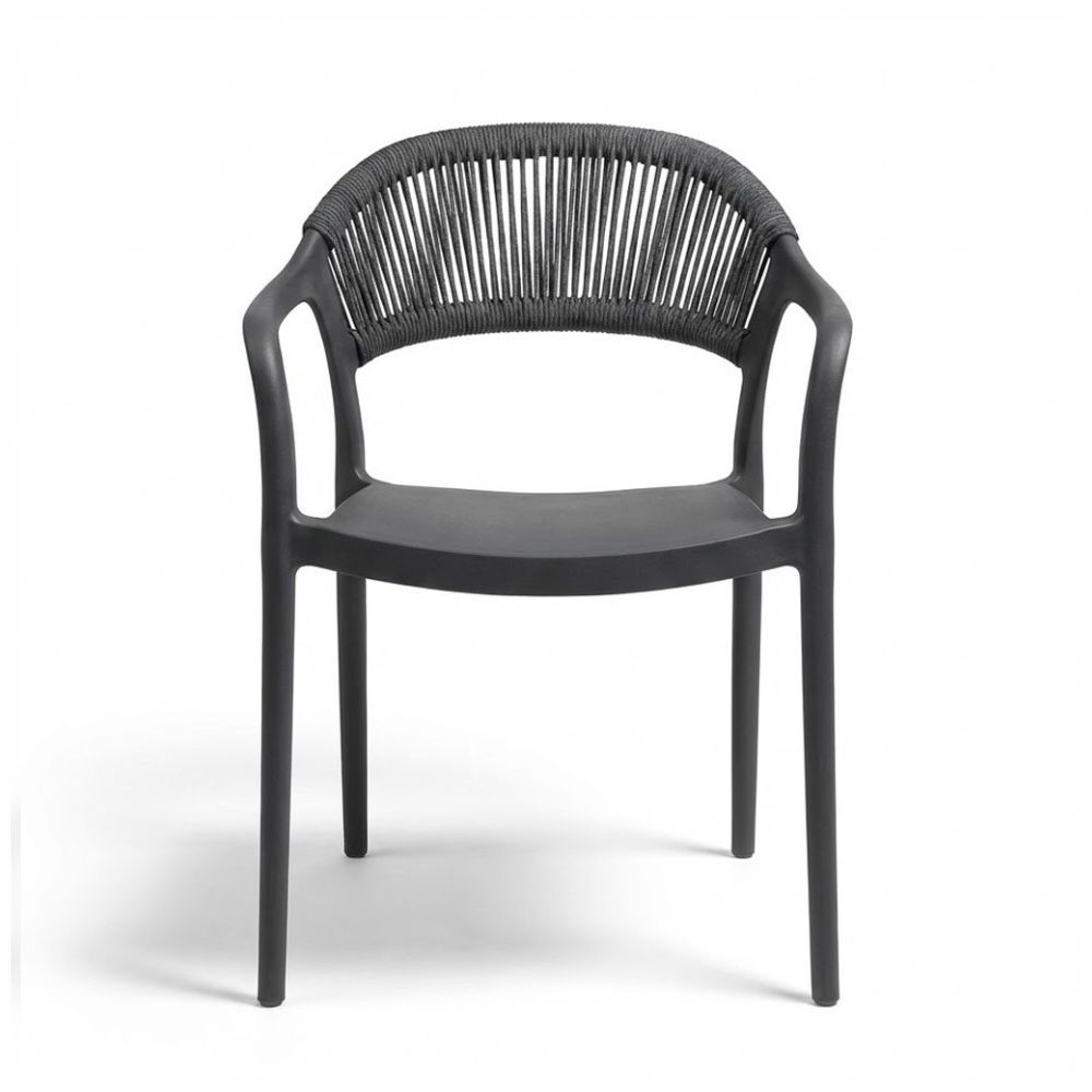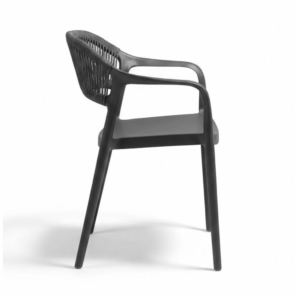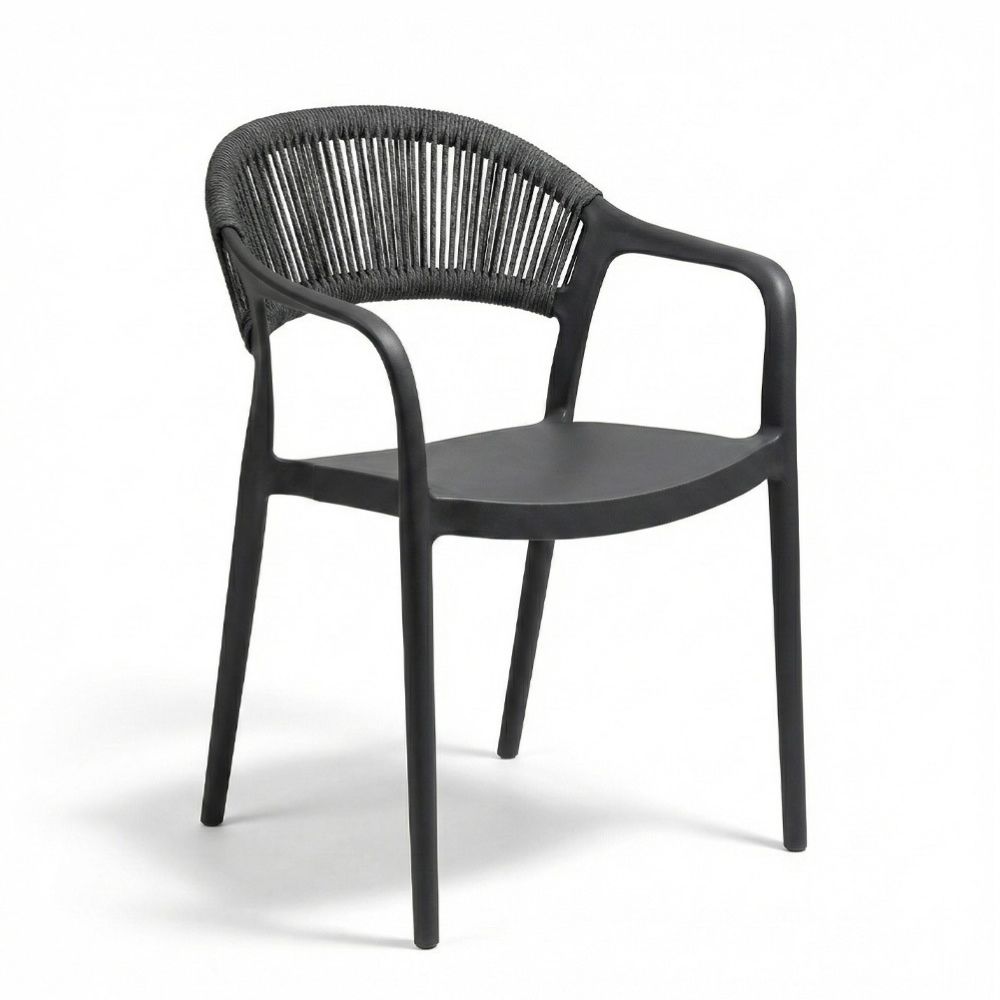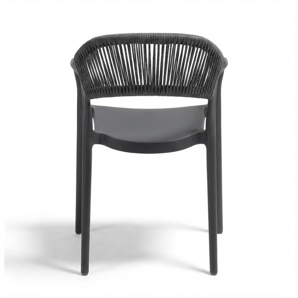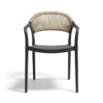 Design Distintivo: La struttura fluida in polipropilene di qualità abbraccia uno schienale unico, realizzato in corda sintetica intrecciata che regala un comfort ergonomico e un look naturale.