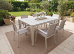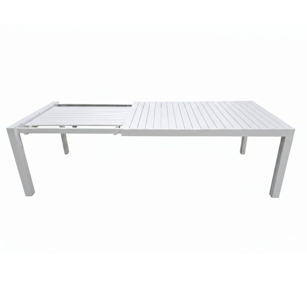 Tavolo Paysage completamente in alluminio con una misura da chiuso cm 166×100, aperto cm 233×100.