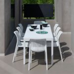 Home Set Tavoli e Sedie RIO SET TAVOLO 140/210 + 6 SEDIE IMPILABILI BIT BIANCO IN FIBERGLASS – NARDI