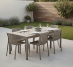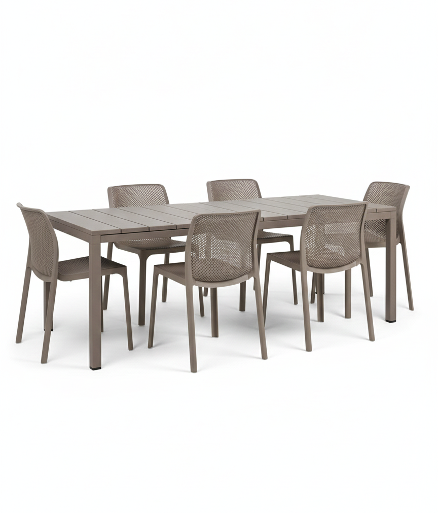 RIO SET TAVOLO 140/210 + 6 SEDIE IMPILABILI BIT TORTORA IN FIBERGLASS – NARDI