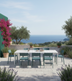 Il tavolo Rio 210 è allungabile fino a 280 cm, dai dettagli lineari e puliti con una spiccata personalità. Il piano è dogato in resina DurelTop trattata anti-UV e colorata in massa, mentre la struttura è in alluminio verniciato. Solido e funzionale, un dettaglio che ne esalta la praticità è la gamba telescopica, la quale permette di sfruttare in modo molto più agevole e pratico tutto lo spazio aggiuntivo che si viene a creare quando il tavolo è esteso.
