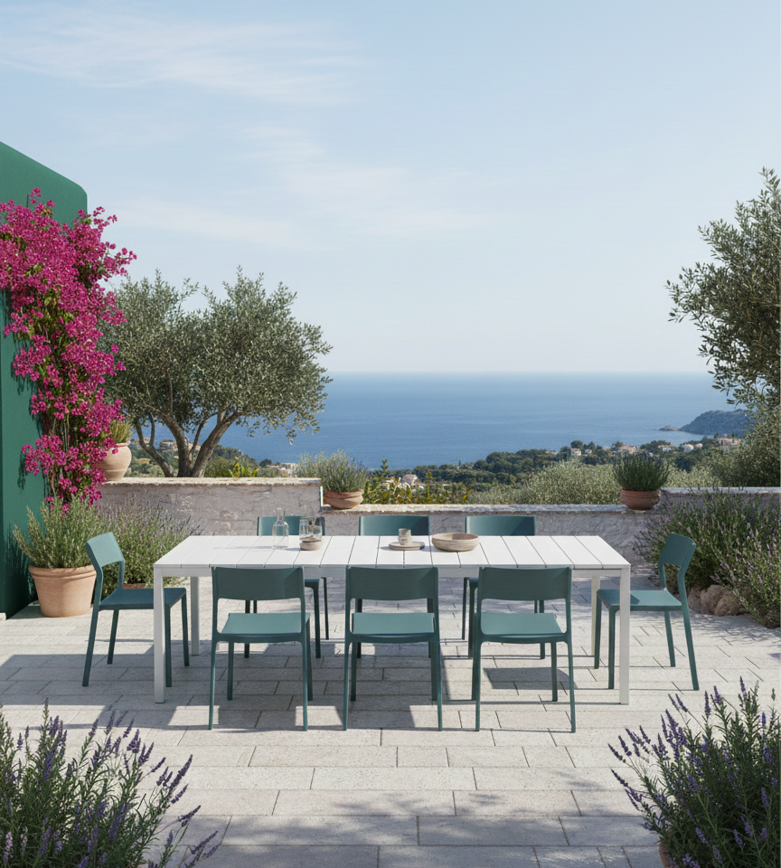 Se cerchi un comfort ancora più avvolgente, ti invitiamo a scoprire la poltroncina Trill. Per uno spazio esterno piu’ contenuto, invece, scopri la versatilità del set tavolo Rio 140: il tavolo allungabile fino a 210 cm perfetto per i tuoi momenti in compagnia.