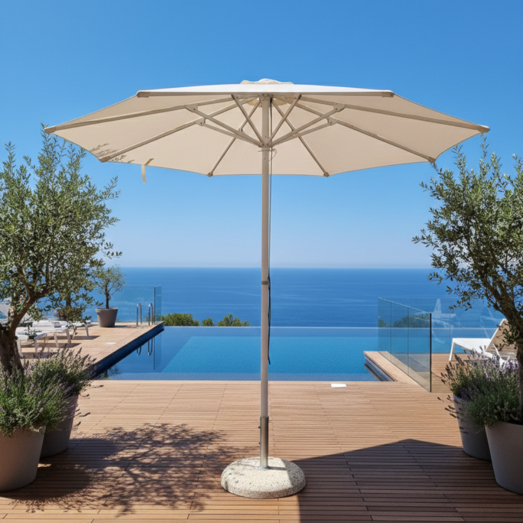 Per garantirti la massima flessibilità nella personalizzazione del tuo spazio, l’ombrellone Rock viene fornito senza base.