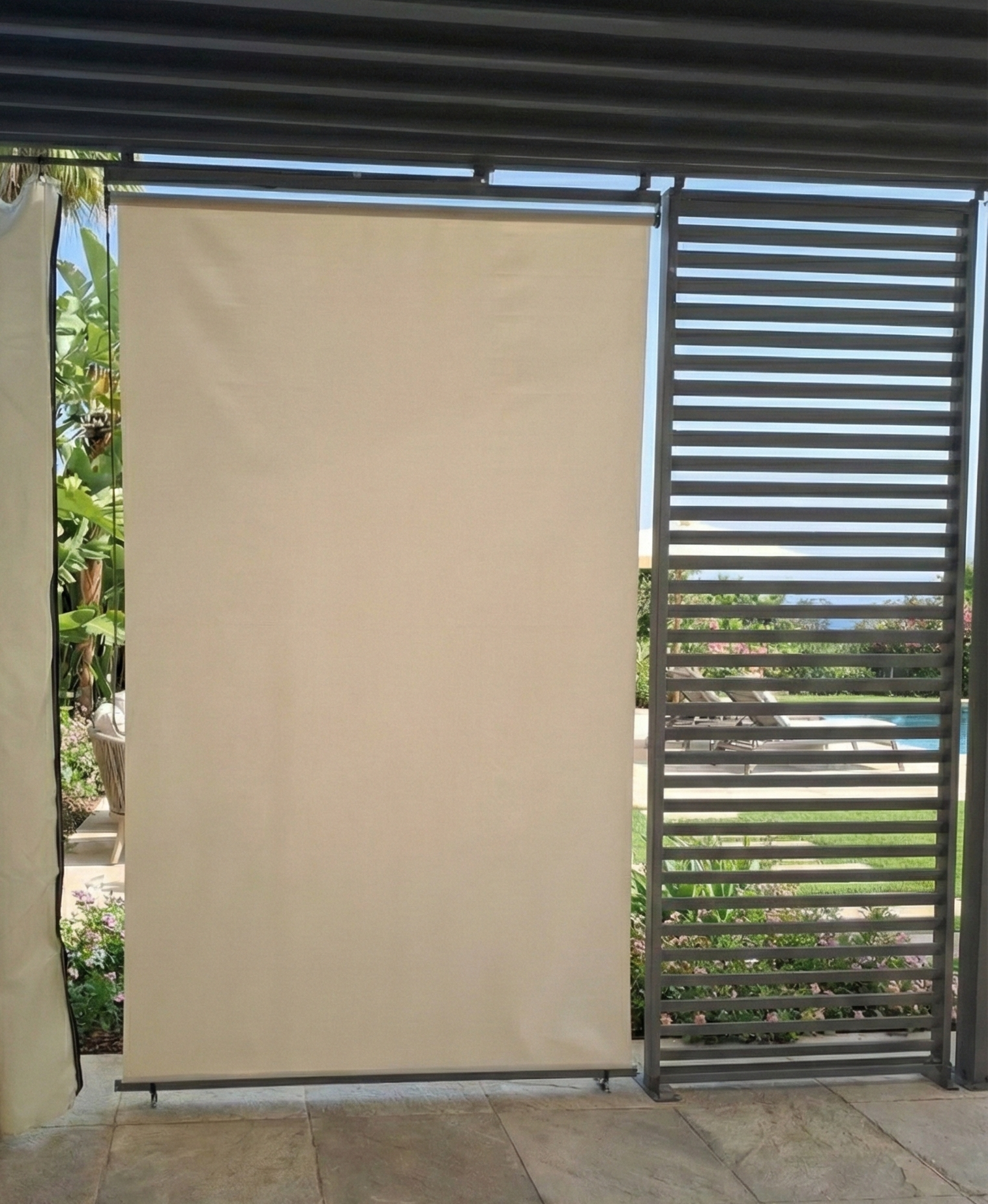 TENDA A RULLO OMBREGGIANTE BEIGE PER PERGOLA TEQUILA – OPEN D