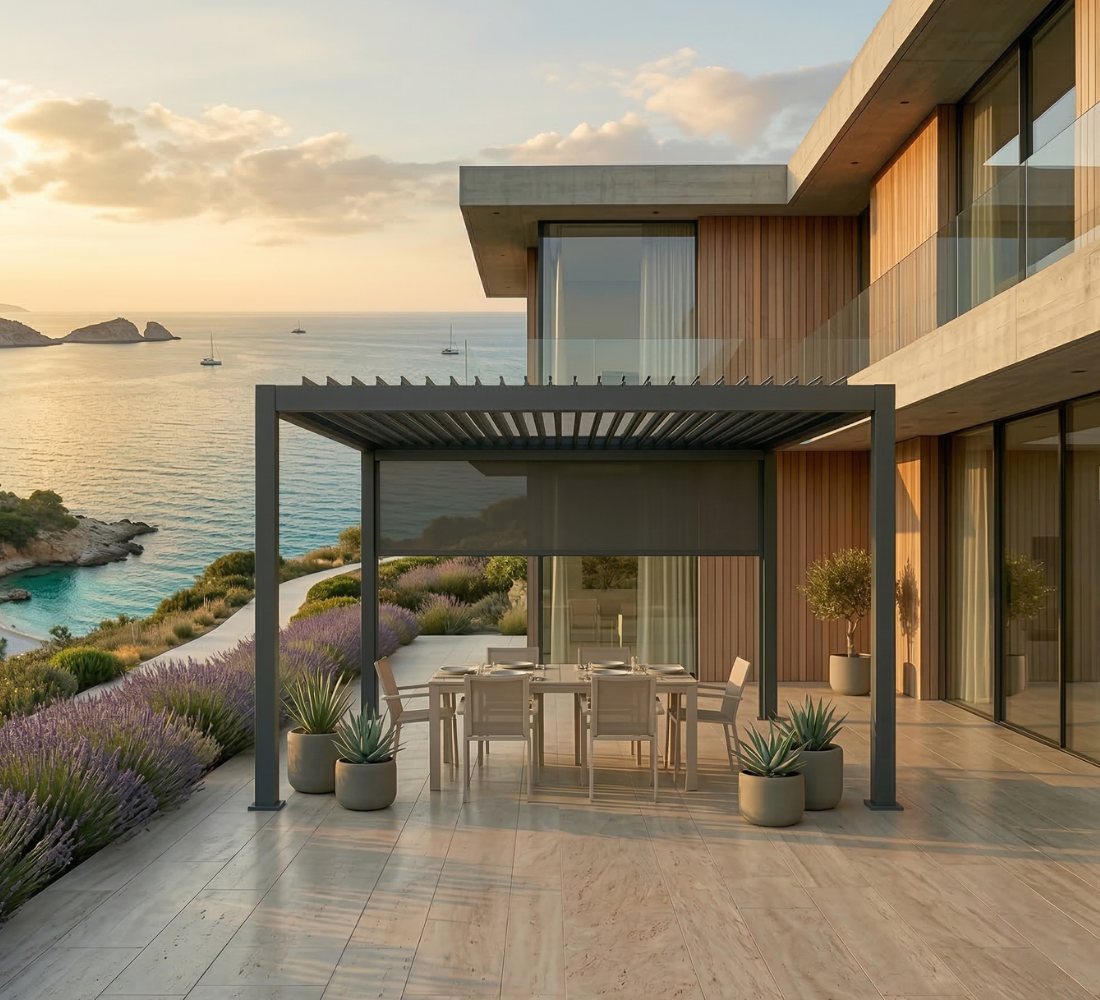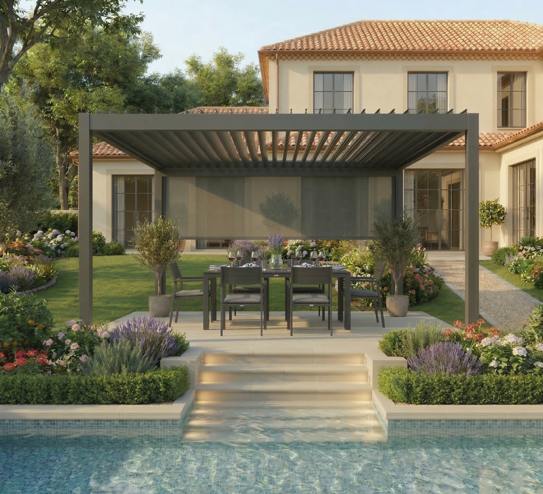 Trasforma la tua Pergola Vanity Antracite! Stanco che vento e sguardi indiscreti rovinino i tuoi momenti di relax all’aperto? La Tenda Avvolgibile Antivento di Open D è la soluzione definitiva per vivere il tuo spazio esterno in ogni stagione, combinando massima funzionalità ed estetica di pregio. Specificamente pensata per la Pergola Vanity Antracite, si integra perfettamente nell’architettura esistente, mantenendo una linea pulita ed elegante. Realizzata con un tessuto da 380 grammi, nel colore Grigio scuro si abbina magnificamente alla struttura antracite della pergola, conferendo un tocco di modernità, sobrietà e lusso discreto. Facile da aprire e chiudere, ti permette di regolare l’ombra e la protezione con un semplice gesto, a seconda delle tue esigenze. Riscopri la tua Pergola Vanity, ora più accogliente che mai.