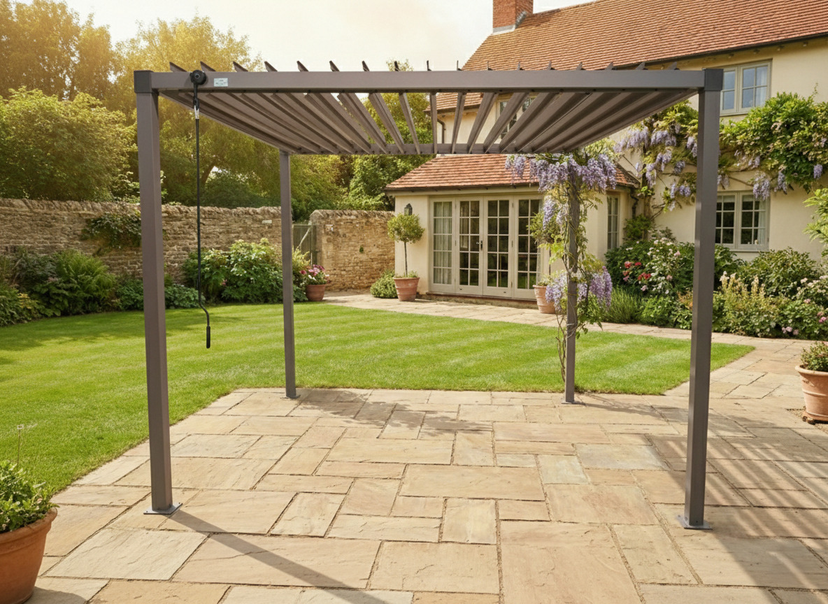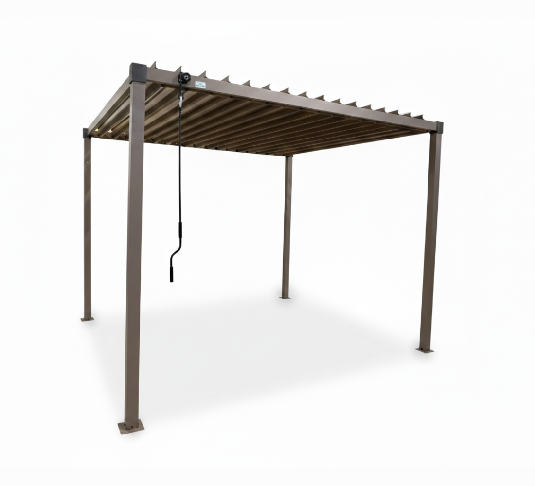 Home Pergole e Ombrelloni TEQUILA PERGOLA BIOCLIMATICA 3X3 TORTORA IN FERRO – OPEN D