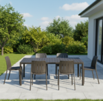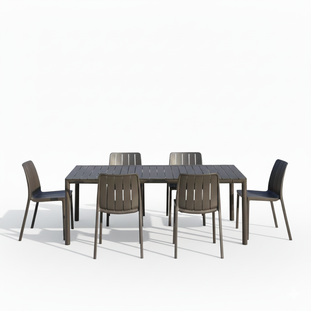 TEVERE SET TAVOLO 147/211 + 6 SEDIE IMPILABILI TIBERINA ANTRACITE IN FIBERGLASS – NARDI