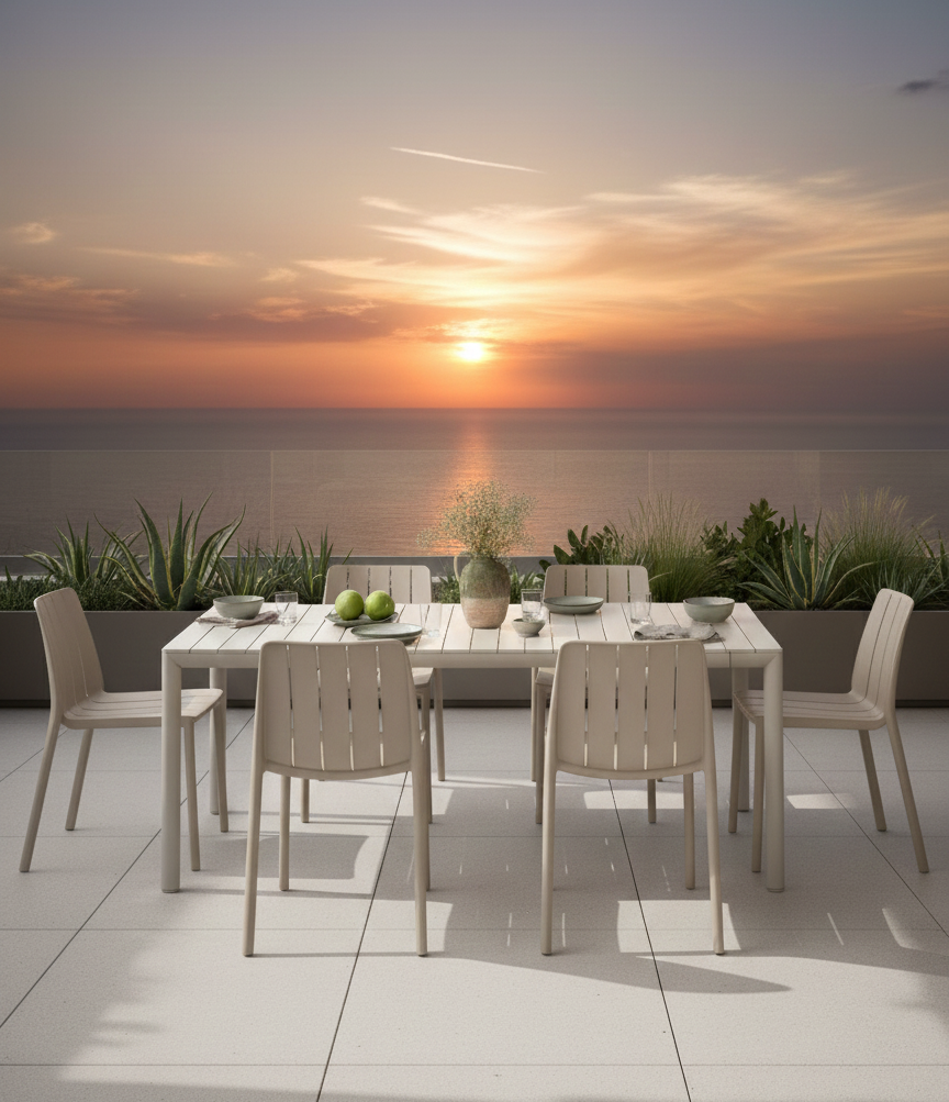 Tevere è il tavolo allungabile da esterno che celebra il tuo spazio all’aperto con un design avvolgente e una profonda anima green. Le sue linee morbide, l’assenza di spigoli vivi e le eleganti forme arrotondate delle gambe creano un’atmosfera rilassata e accogliente. Pensato per la convivialità e per un futuro più sostenibile, Tevere unisce un’estetica raffinata a una coscienza ecologica. È la soluzione ideale per chi cerca un arredo che si espanda con le tue serate, garantendo sempre un comfort visivo e tattile ineguagliabile. La sedia Tiberina è caratterizzata da un design “green” e linee morbide e arrotondate. Si tratta di una sedia monoblocco senza braccioli, con una struttura a doghe e gambe di forma circolare. Realizzata in resina riciclabile, Polipropilene fiberglass, trattato per resistere ai raggi UV e colorato in massa, garantendo una maggiore durabilità del colore. Dotata di piedini antiscivolo per una maggiore stabilità.