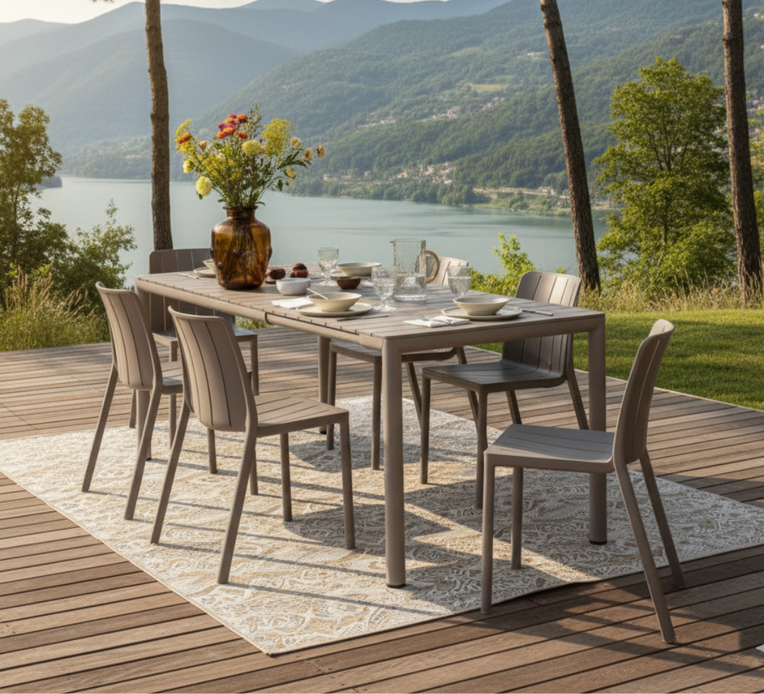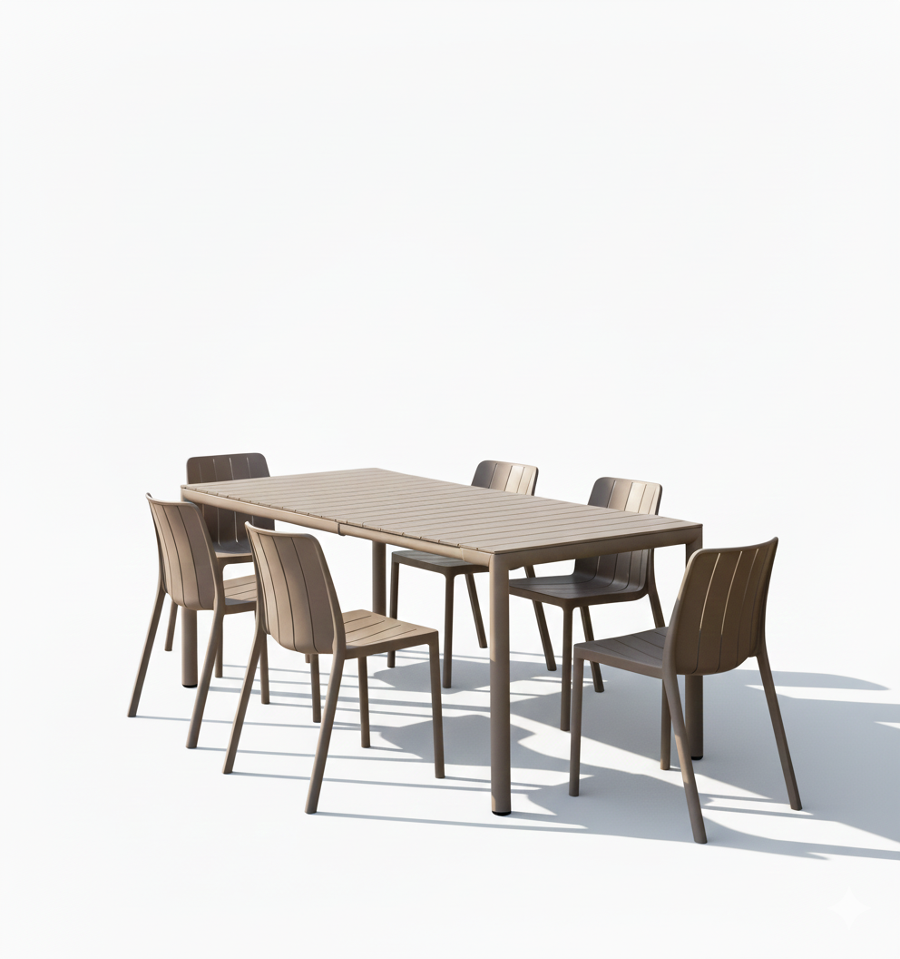 Tevere è il tavolo allungabile da esterno che celebra il tuo spazio all’aperto con un design avvolgente e una profonda anima green. Le sue linee morbide, l’assenza di spigoli vivi e le eleganti forme arrotondate delle gambe creano un’atmosfera rilassata e accogliente. Pensato per la convivialità e per un futuro più sostenibile, Tevere unisce un’estetica raffinata a una coscienza ecologica. È la soluzione ideale per chi cerca un arredo che si espanda con le tue serate, garantendo sempre un comfort visivo e tattile ineguagliabile. La sedia Tiberina è caratterizzata da un design “green” e linee morbide e arrotondate. Si tratta di una sedia monoblocco senza braccioli, con una struttura a doghe e gambe di forma circolare. Realizzata in resina riciclabile, Polipropilene fiberglass, trattato per resistere ai raggi UV e colorato in massa, garantendo una maggiore durabilità del colore. Dotata di piedini antiscivolo per una maggiore stabilità.
