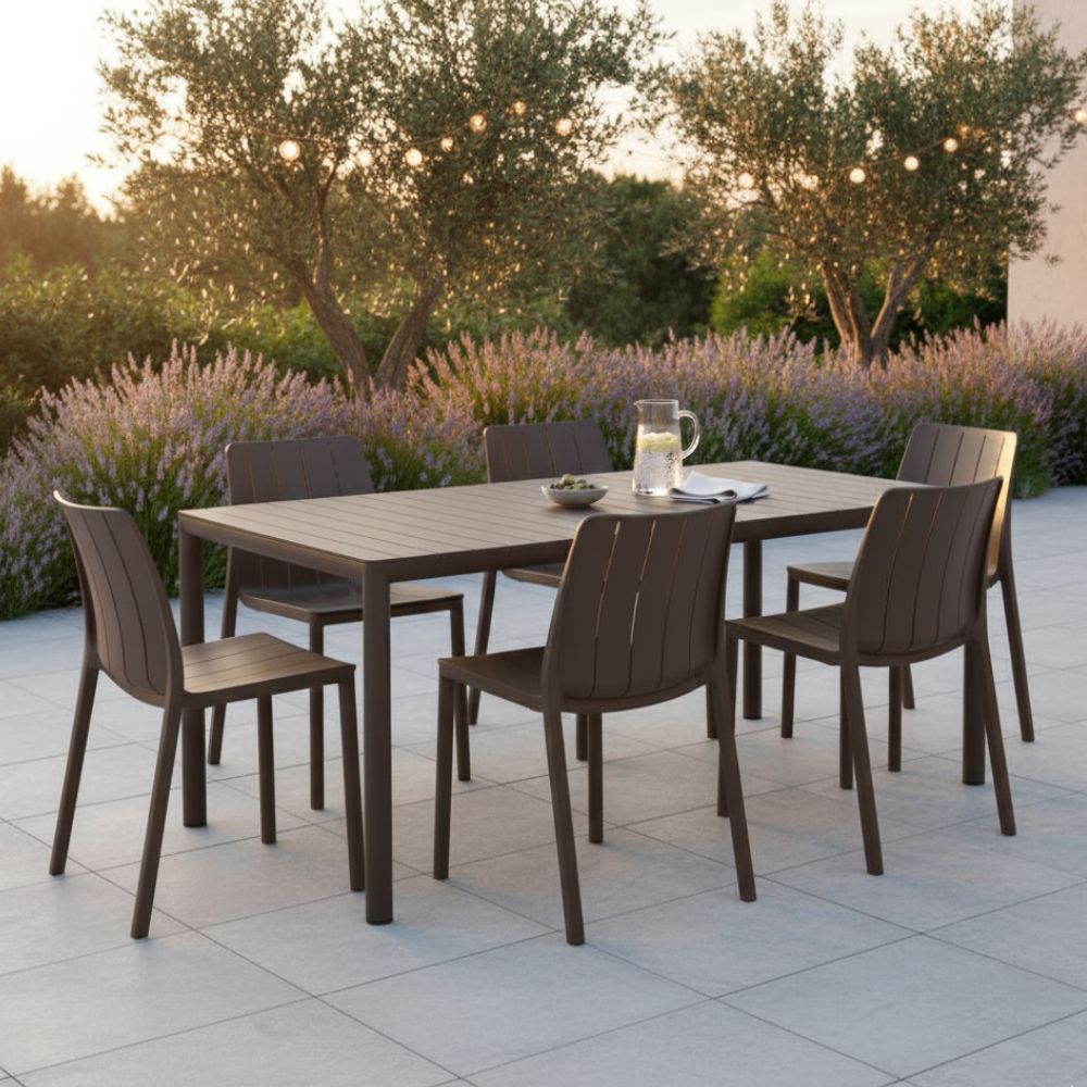 TEVERE SET TAVOLO 211/275 + 6 SEDIE IMPILABILI TIBERINA TERRA IN FIBERGLASS – NARDI