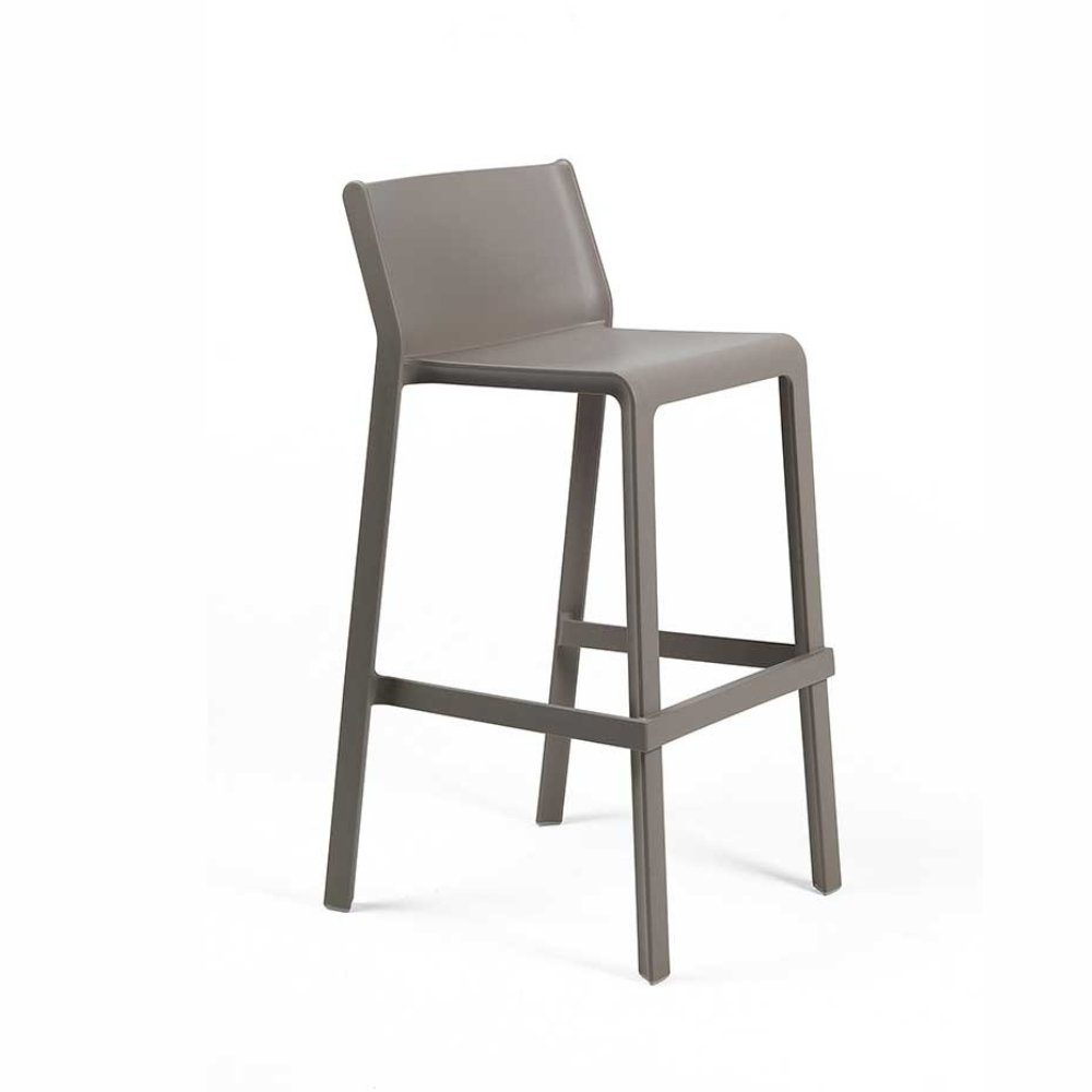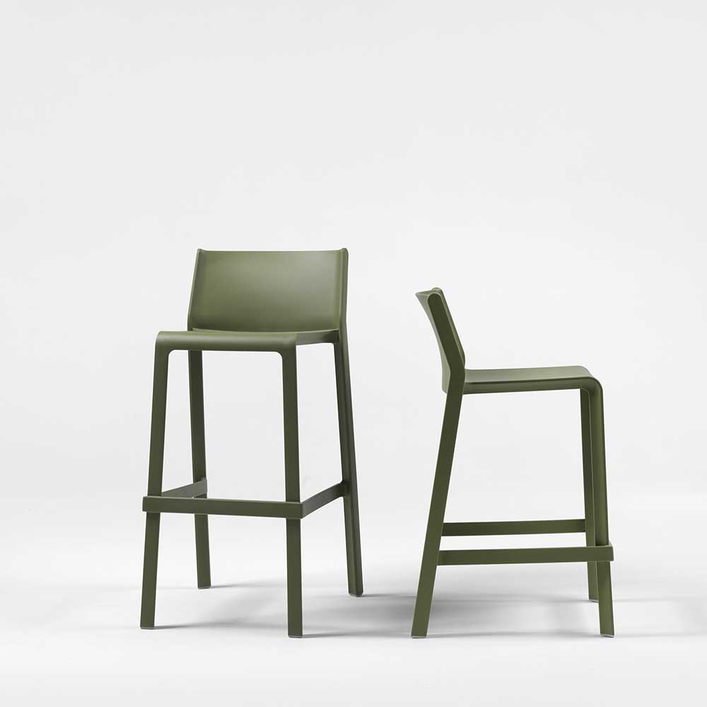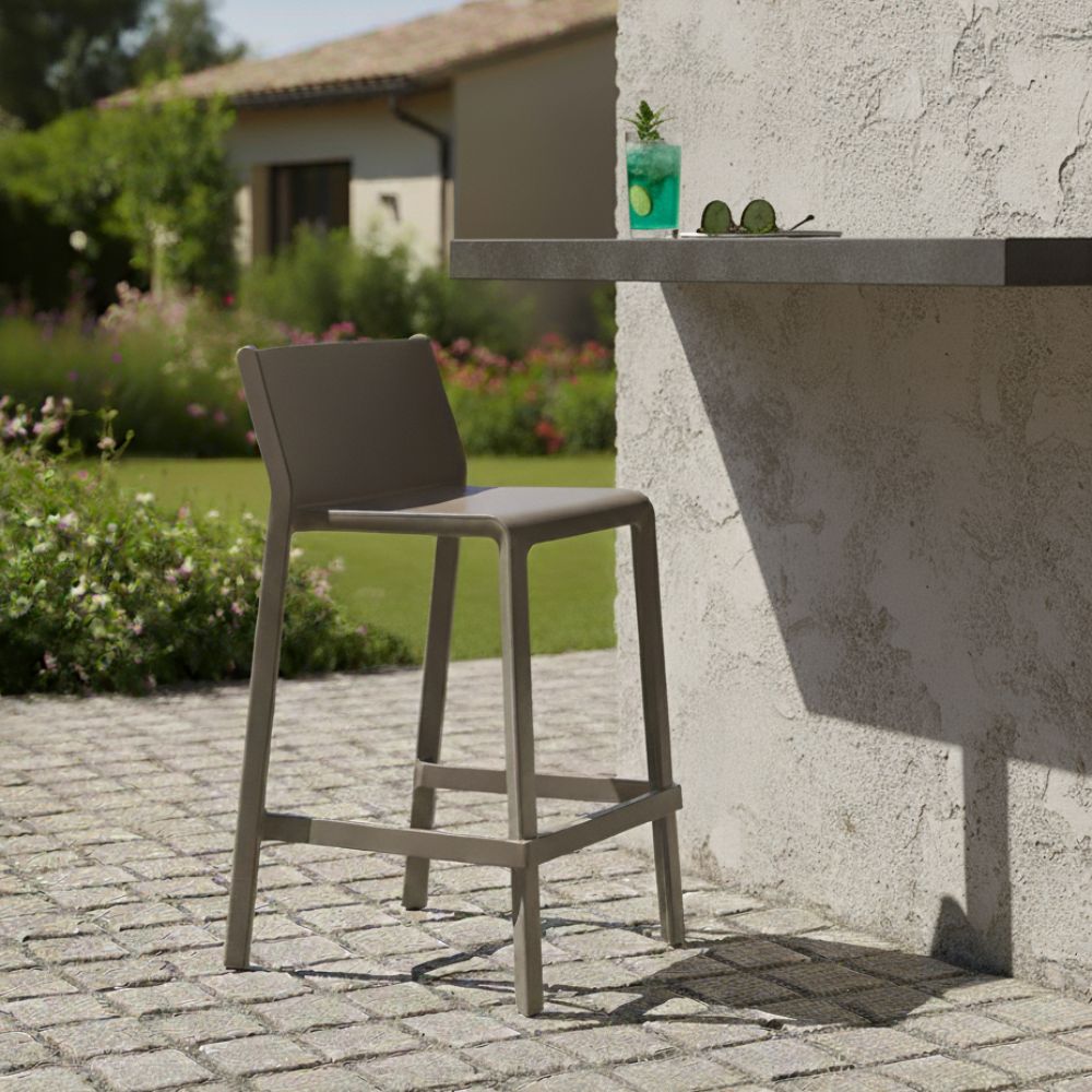 Sgabello Trill da esterno realizzato in polipropilene fiberglass, una resina riciclabile nota per la sua resistenza. La sua struttura monoblocco presenta un design slanciato ed essenziale che, pur rimanendo leggero, garantisce comfort. Il materiale è trattato anti-UV per resistere all’esposizione solare ed è colorato in massa, assicurando la durabilità del colore nel tempo. Caratterizzato da una finitura opaca, è dotato di piedini antiscivolo e offre un’altezza di seduta di 65 cm. Non necessita di particolari interventi di manutenzione.