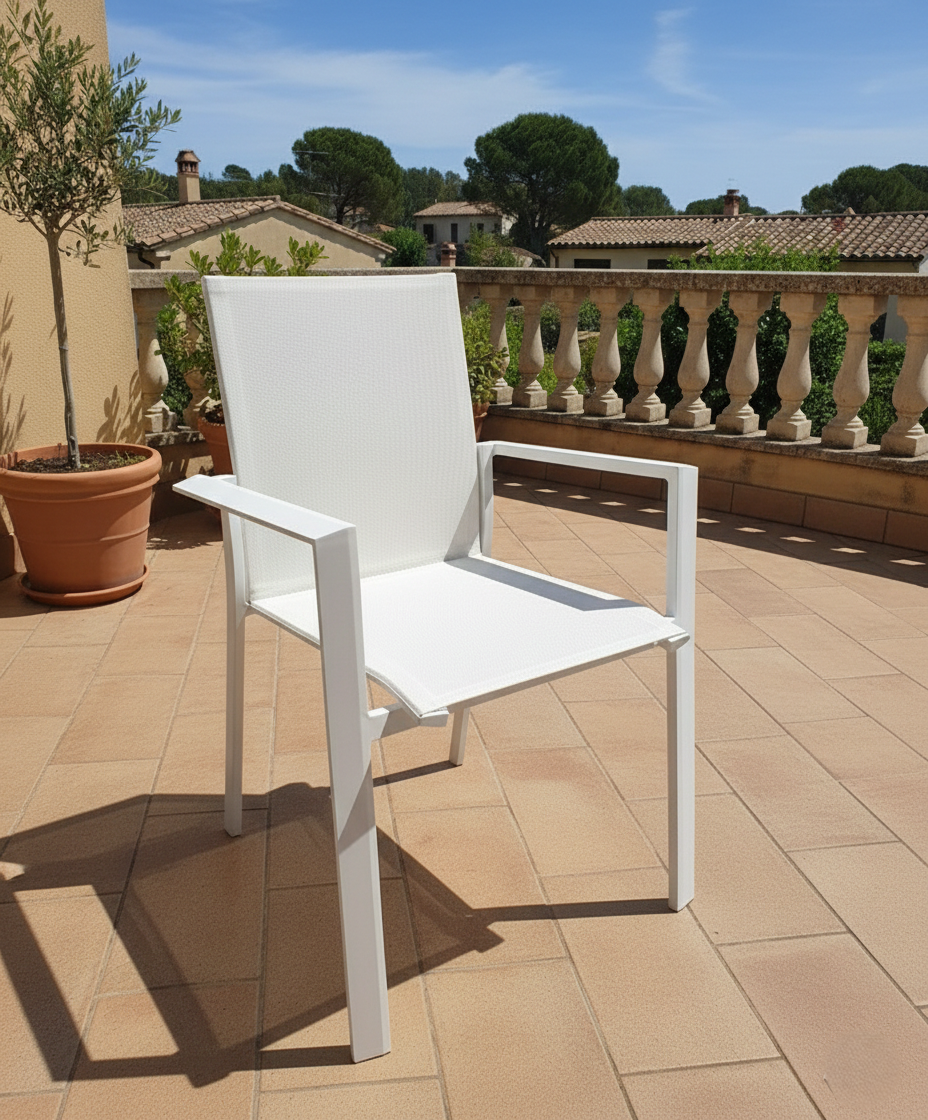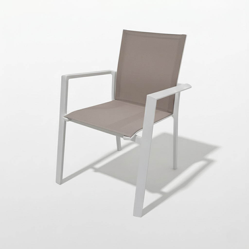 Scoprite il perfetto connubio tra design contemporaneo, resistenza ineguagliabile e comfort. La sua struttura interamente in alluminio verniciato a polvere non è solo un tratto distintivo di eleganza minimalista, ma la garanzia di una durabilità eccezionale. L’alluminio è sinonimo di resistenza inossidabile contro gli agenti atmosferici, i raggi UV e l’usura del tempo. L’anima del comfort è il textilene, un tessuto tecnico d’avanguardia che riveste seduta e schienale. Questo materiale di alta qualità è rinomato per la sua traspirabilità: ideale per le calde giornate estive, non trattiene il calore e asciuga rapidamente. Facilità di manutenzione: basta un panno umido per una pulizia impeccabile. Non solo stile, ma anche estrema praticità, la poltroncina è estremamente leggera e molto gestibile, permettendovi di spostarla con una sola mano per seguire l’ombra o riorganizzare gli spazi in un attimo. Inoltre, è stata progettata per essere perfettamente impilabile, garantendovi un risparmio di spazio.