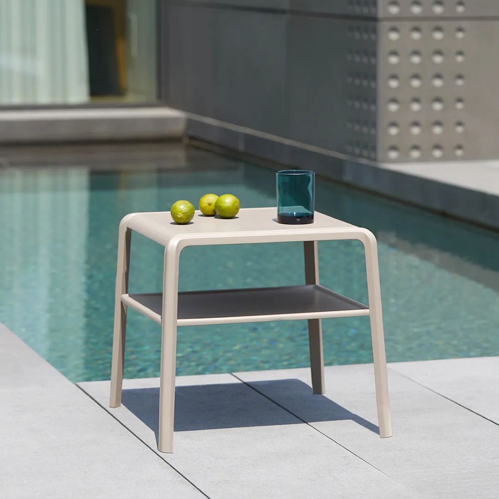 Vela è il tavolino d’appoggio che ridefinisce il concetto di funzionalità e stile nel tuo outdoor. Dotato di un ripiano estraibile, si trasforma istantaneamente in un pratico vassoio. Un dettaglio che fa la differenza, perfetto per servire un caffè o tenere al sicuro il tuo libro e gli occhiali da sole. Realizzato in resistente tecnopolimero, questo tavolino è robusto, leggero e pensato per resistere nel tempo agli agenti atmosferici.