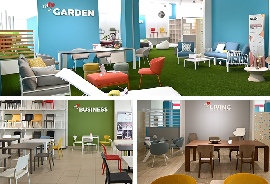 Vieni a scoprire le nostre collezioni e offerte direttamente in showroom! Ti aspettiamo per farti toccare con mano i nostri arredi e per consigliarti al meglio nella scelta delle soluzioni per te. ARREDO ZONA LIVING, DIVANIMOBILI PER GIARDINI E TERRAZZIARREDI ESTERNI PER ATTIVITA’ E STRUTTURE TURISTICO-RICETTIVEUn ampio showroom facilmente raggiungibile dalla s.s. 274 (Lecce – Leuca)Area 2.000 mq di arredi contemporanei per Casa e Giardino Parcheggio privatoParco giochi gratuito